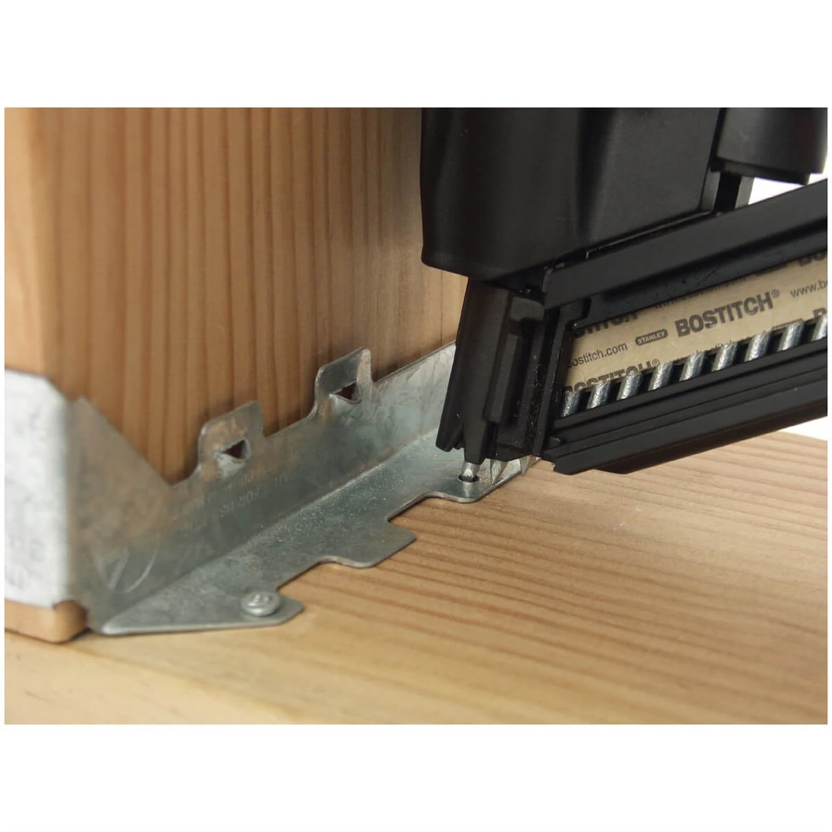USE THIS METAL CONNECTOR NAILER STRAPSHOT™ WITH METAL FRAMING HARDWARE. APPLICATION IS QUICK AND PRECISE. IT IS LIGHTWEIGHT AND EASY TO MANEUVER. DEPEND ON THIS METAL CONNECTOR NAILER STRENGTH AND DURABILITY. BOSTITCH 7 Year Limited WARRANTY*