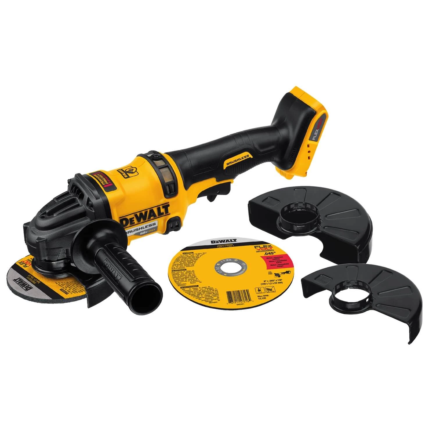 The FLEXVOLT 4-1/2 in.-6 in. (115 mm.-150 mm.) Grinder with Kickback Brake is maximized for power and durability. It delivers 13 amp power as compared to the D28144N with the portability and convenience of cordless through revolutionary FLEXVOLT technology by DEWALT. Purchase battery separately.