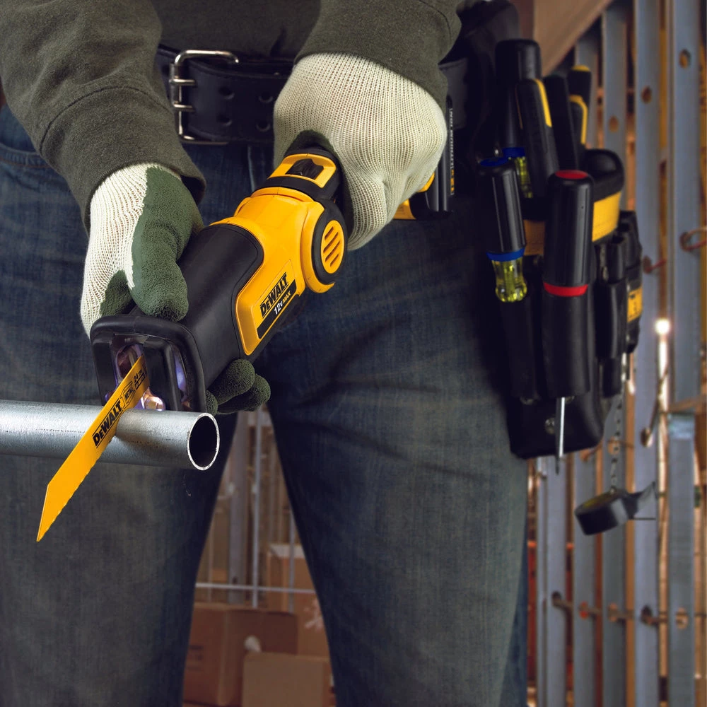 The DCS310S1 12V MAX* Pivot Reciprocating Saw Kit has an adjustable 3-position pivoting handle allowing users to make difficult cuts in confined spaces. The powerful motor delivers up to 2700 strokes per minute through a variable speed trigger and with a 9/16″ stroke length, delivers fast cutting. A bright LED light is included to illuminate dark work areas.