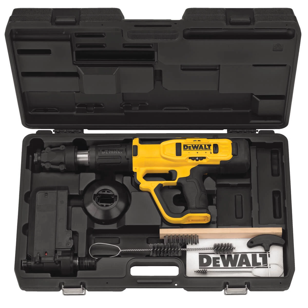 The DFD270 .27 Caliber Fully-Automatic Powder-Actuated Tool is designed for structural use in commercial steel and concrete applications. The nailer drives both 8mm and .300ā head fasteners and clips in lengths of 1/2ā ā 2-7/8ā, as well as 1/4ā threaded studs. It is powered by a standard .27 caliber (short) safety strip load. A power dial allows for adjustment within .27 caliber load colors. Tool-free disassembly allows for easy cleaning and maintenance.Ķ Ķ The DFD270 tool features automatic piston return and load indexing between fastenings, making it ideal for high-capacity commercial applications. With the addition of the DFD2703 Accessory Magazine, the tool can also fasten collated pins.Ķ Ķ Kit includes tool, Magazine nose piece, Single Shot nose piece, cleaning kit, spall guard, and kit box.