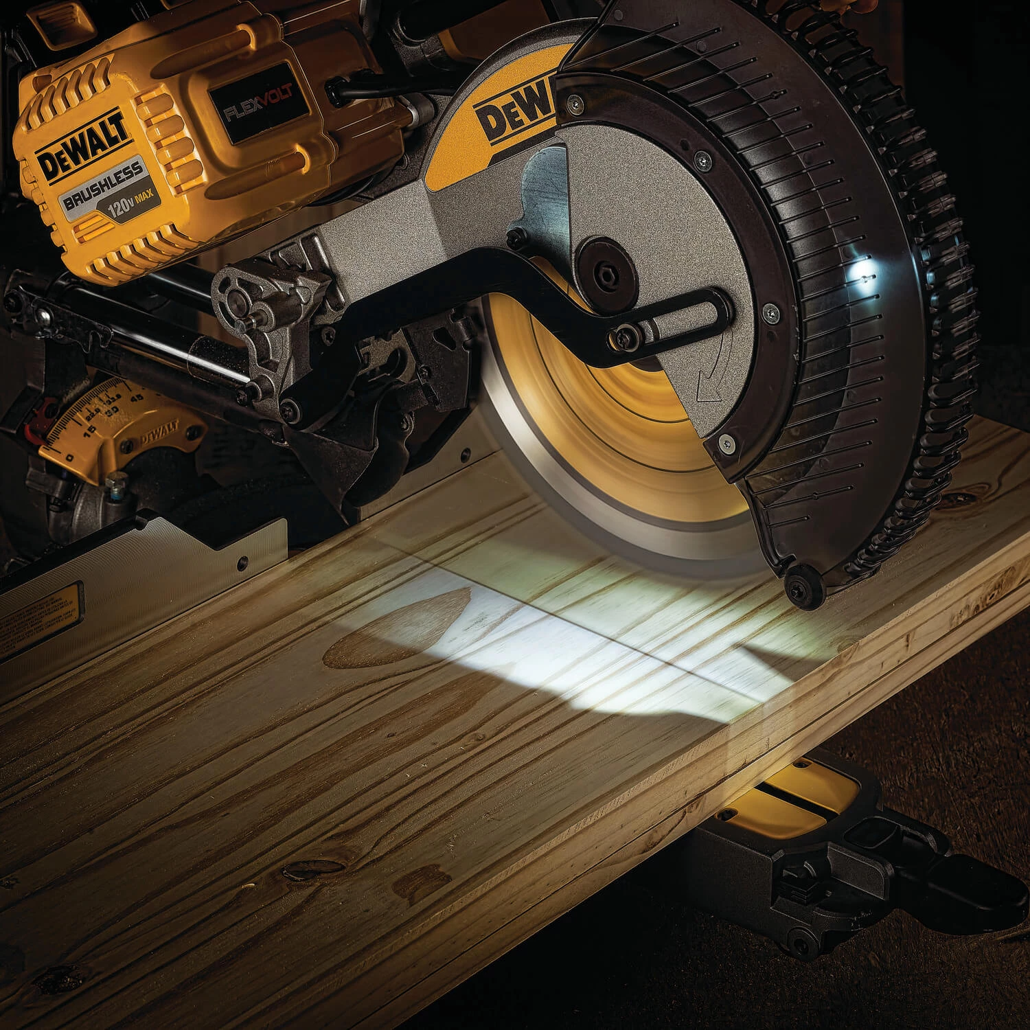 The DEWALT DHS790AT2 Flexvolt Miter saw offers flexible power options – corded for unlimited runtime or cordless for portability powered by DEWALT brushless motor technology. Accuracy is delivered through adjustable miter scale with 11 positive stops and high visibility bevel scale the CUTLINE(TM) blade positioning system. The kit includes 2 60V MAX* lithium ion battery packs, a dual port fast charger, and the DC120A corded power supply.