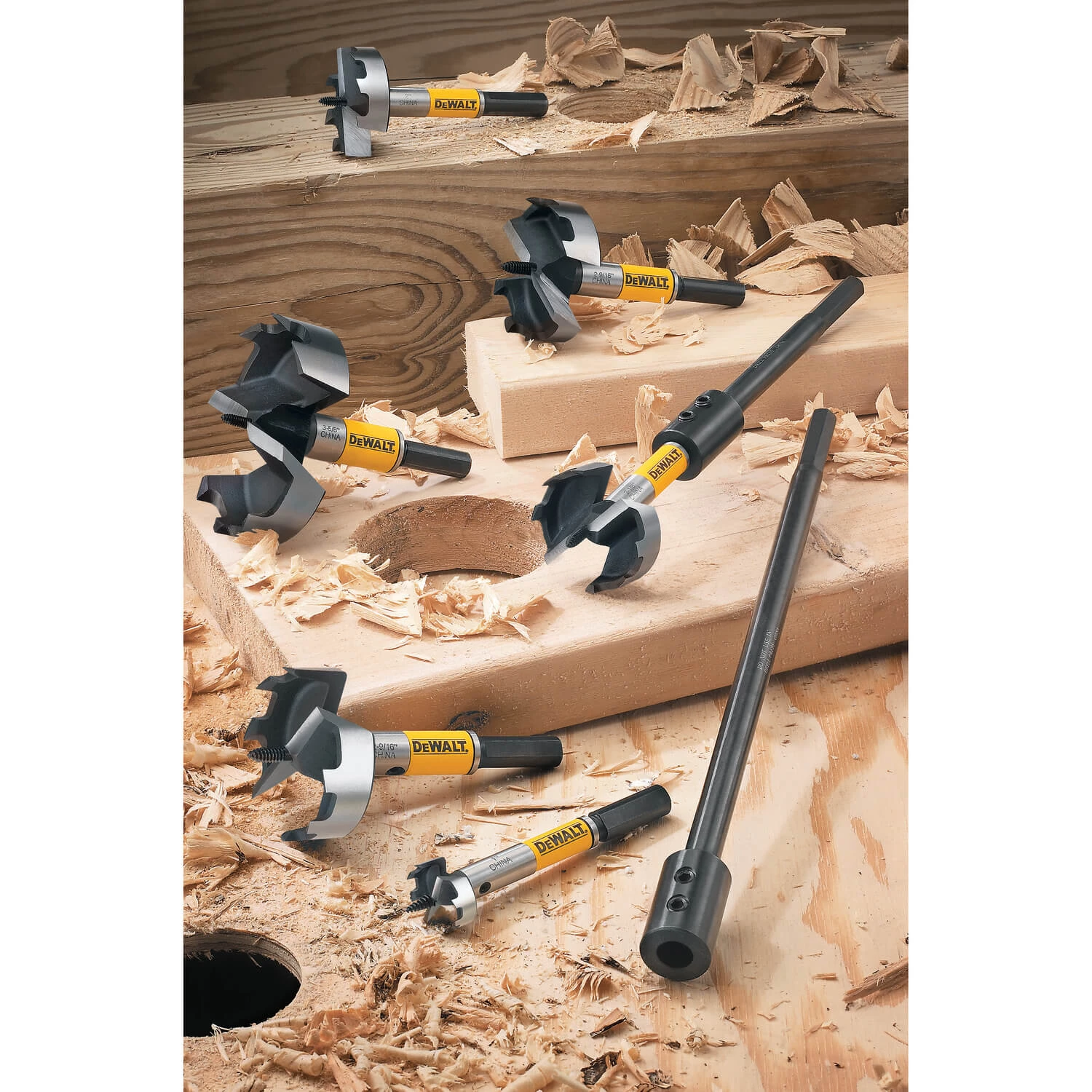 With an aggressive spur for fast material penetration, DEWALT Self-Feed Bits feature optimized cutting geometry for long life and an open-tooth design for easy re-sharpening. A 7/16″ ball groove shank offers quick-change applications.