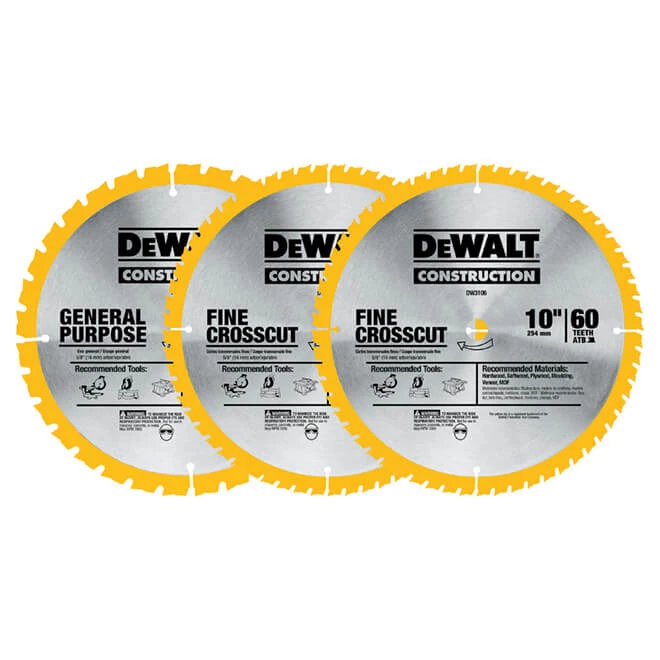 INCLUDES: DeWalt DW3106P5B3C – 10 IN COMBO PACK 60T & 32T