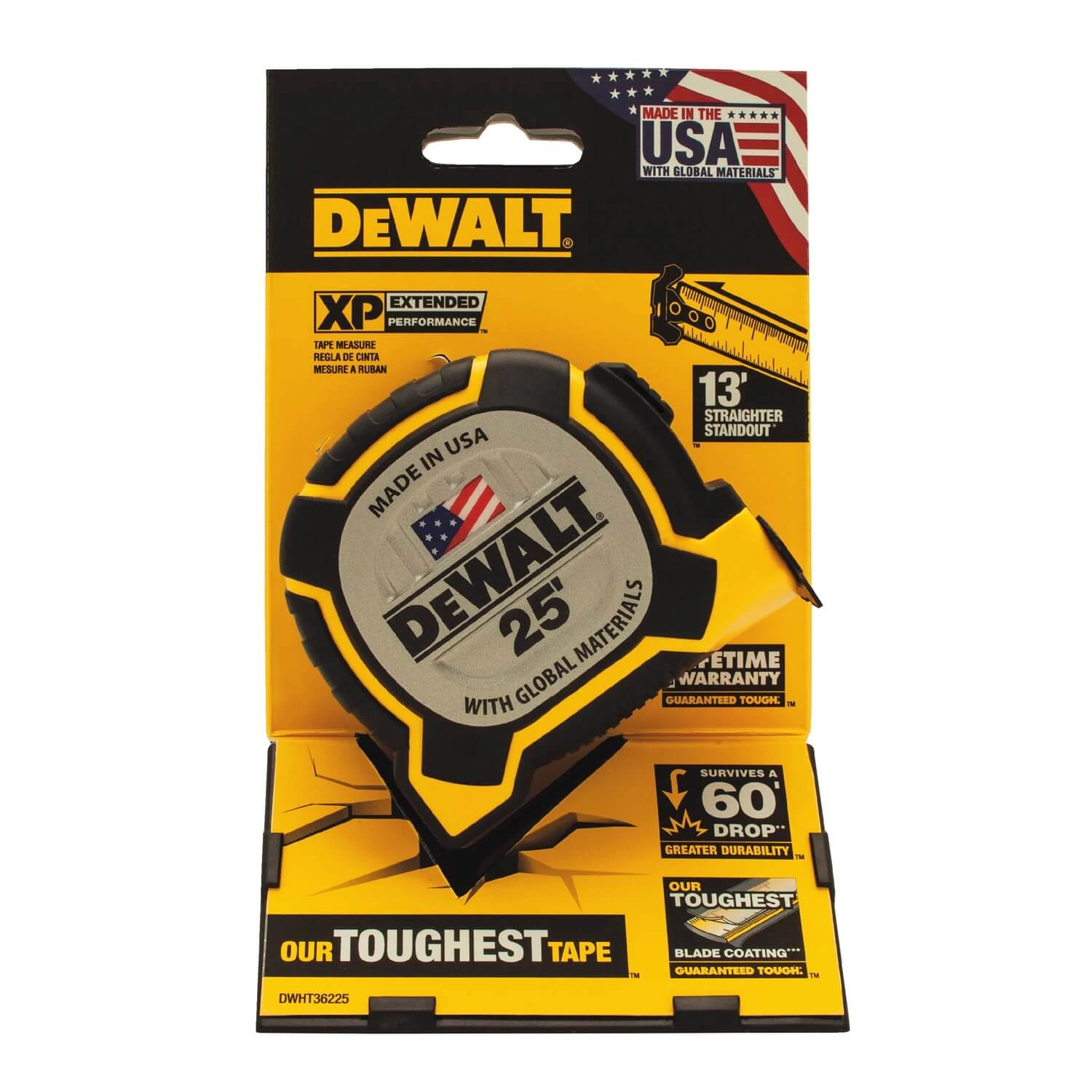 - Guaranteed tough, the DEWALT® XP™ Tape Measure features 9″ of heavy-duty thermoplastic coating at the end of the blade to reduce blade breakage near the hook.