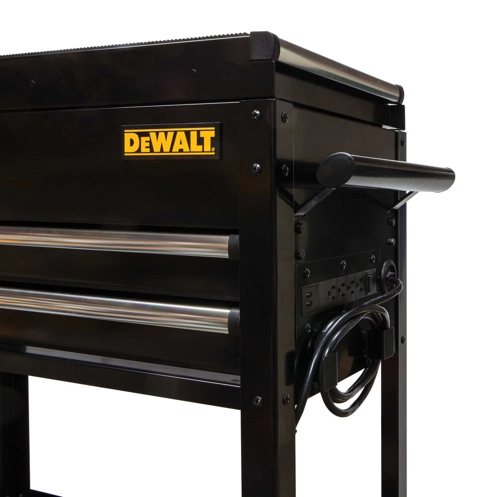 Equipped with Power & USB, the DEWALT Sliding Tray Cart provides a range of storage options, including a lockable sliding top, 2 drawers and a 3″ bottom tray to manage all your daily tasks.
