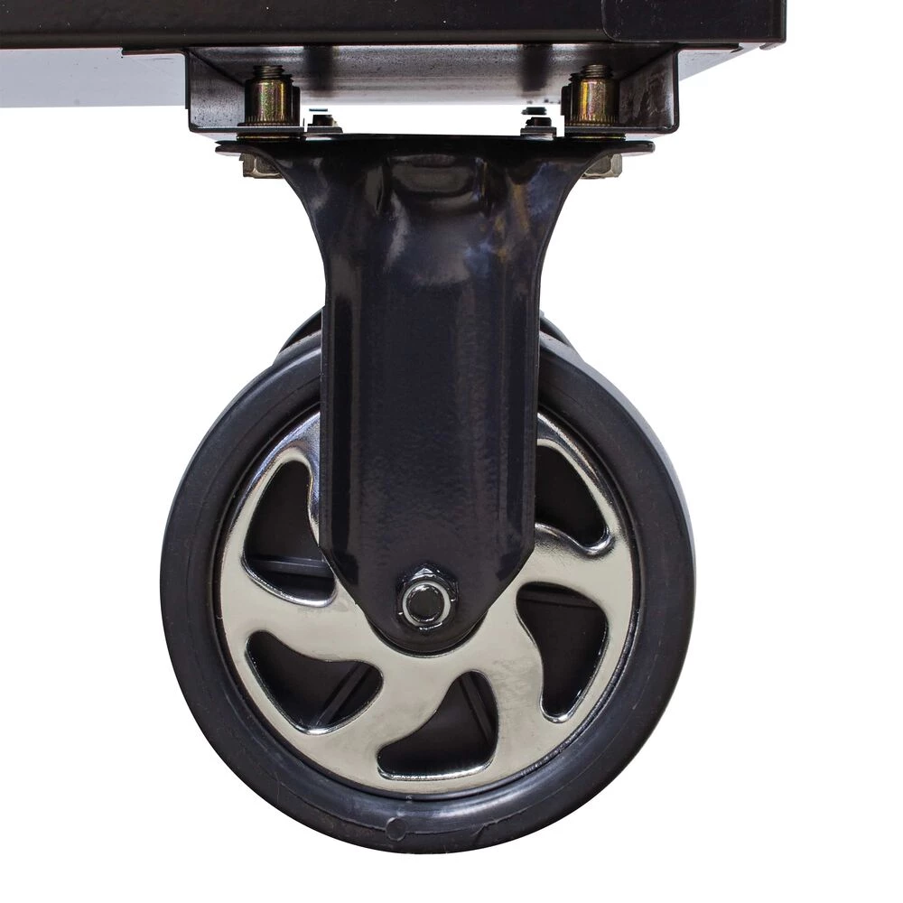- Padded top protects the powder coat finish and doubles as a work surface
