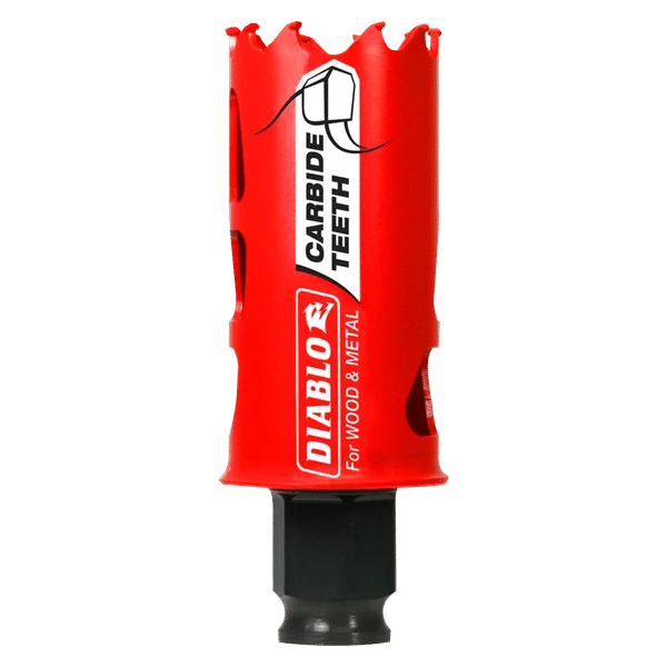 Diablo introduces the first carbide-tipped hole saws on the market to cut both wood and metal (wood, nail-embedded wood, plastic, aluminum, metal, cast iron, stainless steel and metal). Delivering 50 times longer cutting life than bi-metal, these new carbide-tipped hole saws offer faster cutting performance and increased productivity.