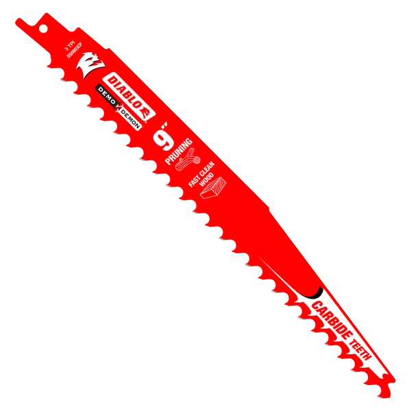Diablo’s new Demo Demon Carbide pruning and fast clean wood blades feature an aggressive carbide tooth geometry for an unmatched 50 times longer cutting life, faster cuts and increased productivity in pruning and clean wood cutting applications. These industry first carbide blades are designed with large gullets and a strengthened, oversized blade body for fast chip removal in extreme cutting applications. In addition, these radical blades feature Perma-Shield non-stick coating to prevent gumming and friction for fast, effortless cuts in some of the toughest wood cutting scenarios.