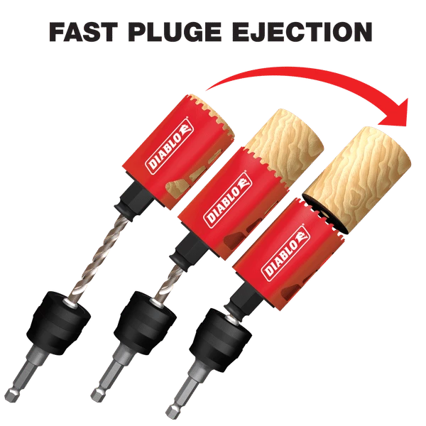 Diablo’s new, high performance hole saws deliver faster cutting performance and increased productivity. Unlike anything on the market, Diablo’s hole saw system and mandrel design simplify the attachment process for fast and efficient hole saw mounting. These radical new hole saws provide ultimate cutting length to bore deeper holes in a single pass, tool-free plug ejection and Variable Tooth Design for faster cuts.