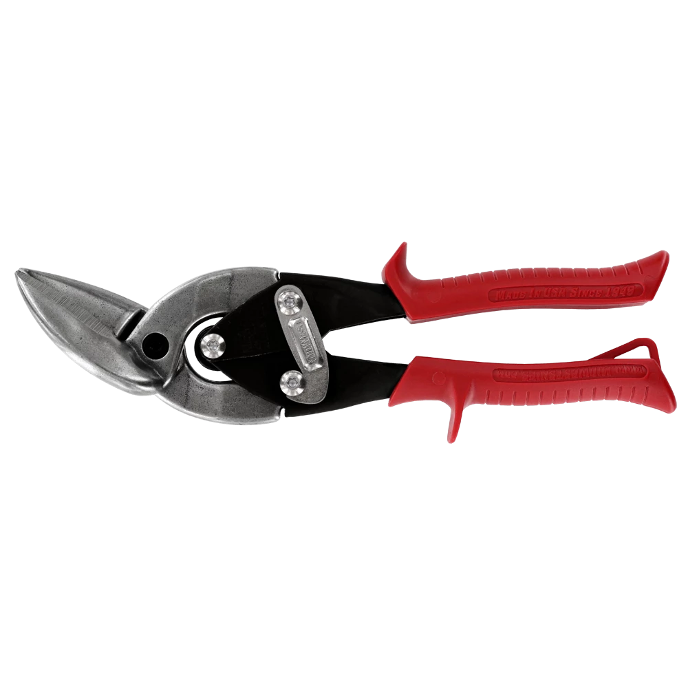 MIDWEST® Offset Left Aviation Snips flow material away from blades and position user’s hand above material for best maneuverability cutting full sheets or tight curves. This model is easiest used in right hand.