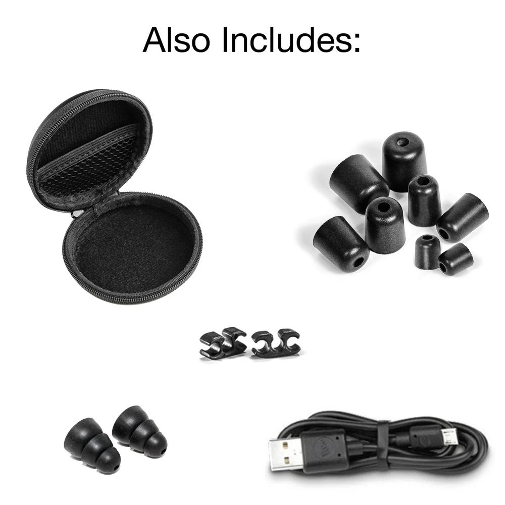 ISOtunes PRO comes with 4 pairs of ISOtunes TRILOGY foam eartips, 1 pair of silicone triple-flange eartips, a micro-USB charging cable, and a durable storage case for use on-the-go.Â