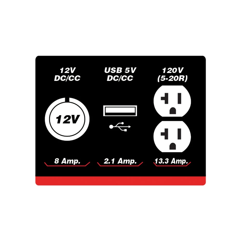 - AC Duplex Outlet: 120V/13.3 Amp. AC output