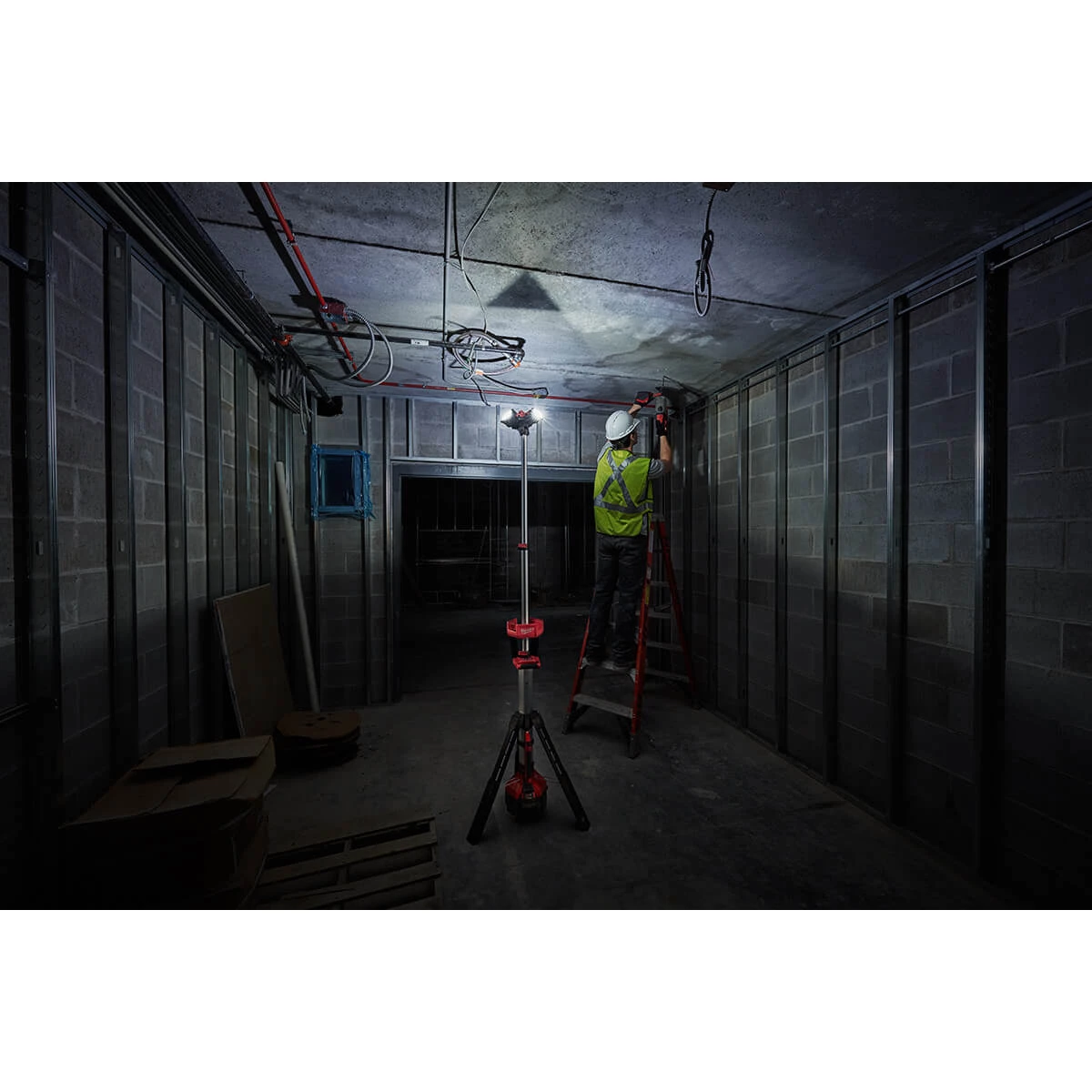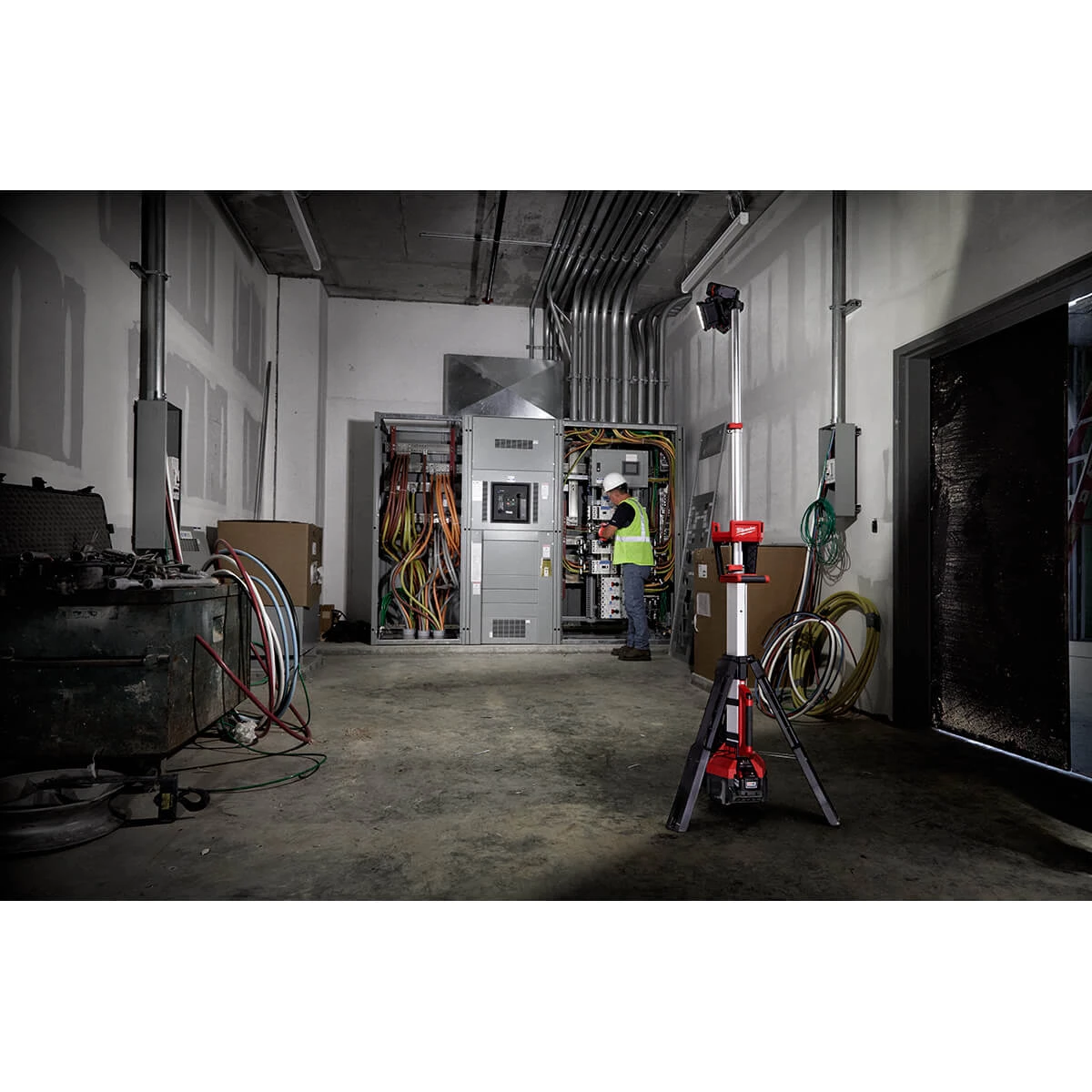 STAND UP. LIGHT UP. CHARGE UP.  The M18™ ROCKET™ LED Tower Light/Charger is designed to deliver a lighting solution that ADAPTS, PERFORMS, and SURVIVES professional use unlike any other portable work light.  The 2135-20 can be setup in seconds to a max height of 7’, and collapses to less than 4’ for easy transport and storage. The light head can be extended from 4-7’ to light overhead work or minimize shadows when casting light downward. The multidirectional light head gives users the ability to orient the three independently pivoting light heads to cast light in several directions. With an integrated AC plug, a user can plug in the light with a standard extension cord, and charge any M18 REDLITHIUM™ pack. Delivering 3,000 lumens, it fills up large areas with TRUEVIEW™ High Definition light.  For optimized control over the output and run-time, the M18™ ROCKET™ LED Light has three settings: high provides 3,000 lumens at 2+ hours, medium provides 1,700 lumens at 4+ hours, and low provides 900 lumens at 8 hours with a M18 REDLITHIUM™ XC5.0 Battery Pack (not included).