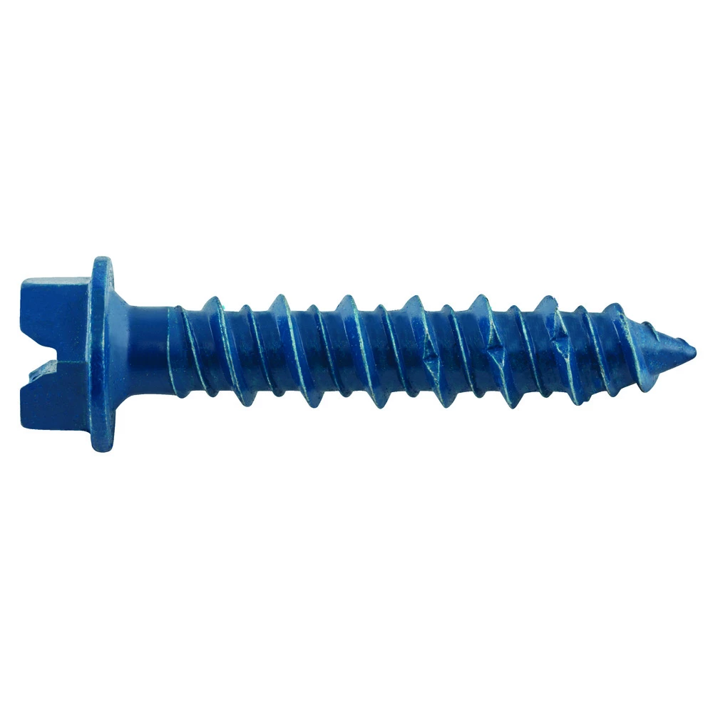 The UltraCon+ fastening system is a complete family of screw anchors for light to medium duty applications in concrete, masonry block, brick, and wood base materials. The UltraCon+ is fast and easy to install and provides a neat, finished appearance. The UltraCon+ screw anchor is engineered with matched tolerance drill bits and installation tools designed to meet the needs of the user and also provide optimum performance. The UltraCon+ features a gimlet point for self-drilling into wood base materials without pre-drilling. The UltraCon+ screw anchor is available in carbon steel with a Stalgard coating in several colors. Head styles include a slotted hex washer head, Phillips flat head, Phillips Trimfit flat head and Hex flange head.