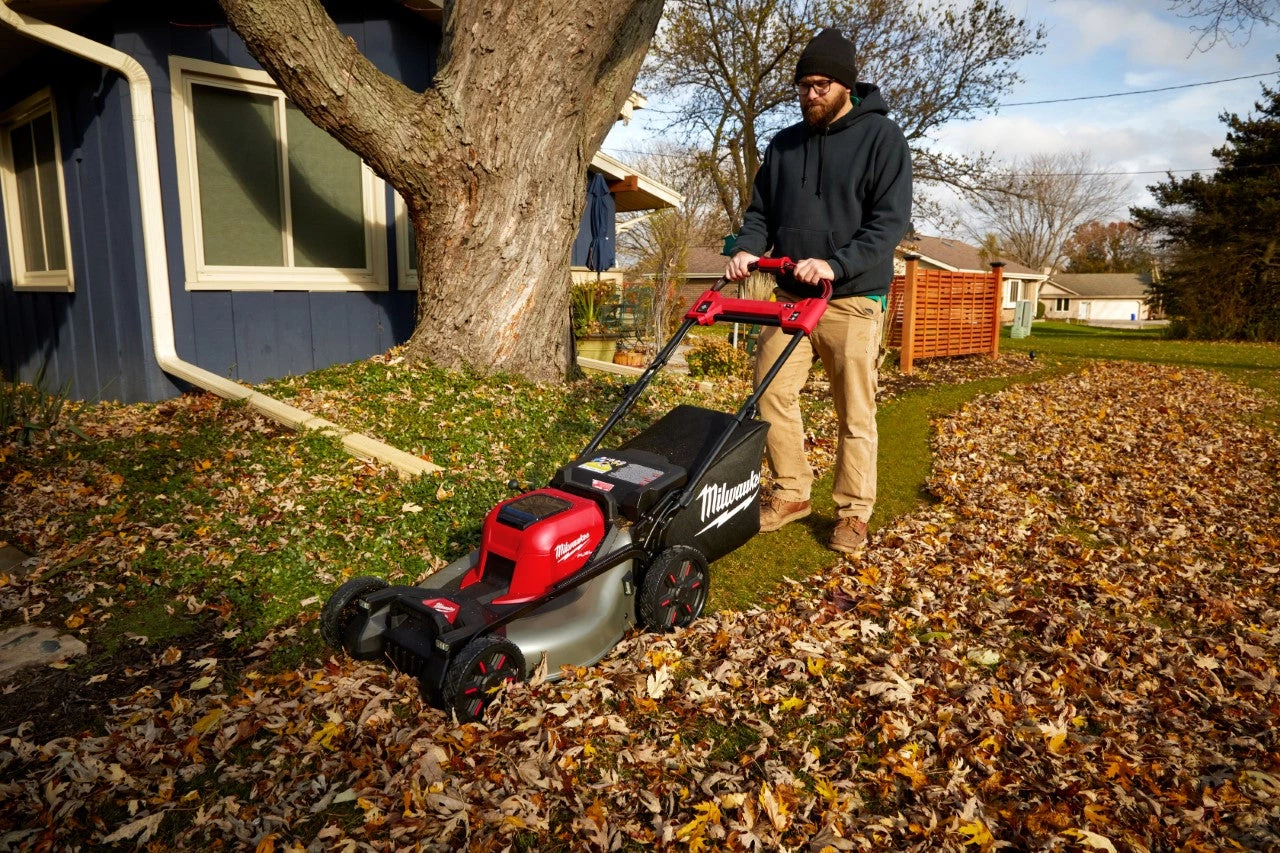 Our M18 FUEL™ 21″ Self-Propelled Dual Battery Mower Kit meets the performance, durability, and ergonomic needs of landscape maintenance professionals. The optimized steel deck design paired with higher blade speed allows the MILWAUKEE® Mower to achieve superior airflow and increased lift to deliver the best cut quality in mulching, bagging, and side discharge applications. The POWERSTATE™ Brushless Motor delivers more max torque than 200cc gas to take on the most demanding mowing applications. The REDLINK PLUS™ Intelligence has total system communication between the tool and battery for unmatched levels of performance, protection, and productivity. The advanced electronic package also delivers an instant throttle response on both the blade and drive motors to reach full throttle in under 1 second, which increases your control and productivity. The mower requires 2 M18™ REDLITHIUM™ Batteries for operation. When paired with the included 2 M18™ REDLITHIUM™ HIGH OUTPUT™ HD12.0 batteries, the lawn mower delivers up to 60 minutes of runtime, allowing up to 1/2 acre of cutting when removing 1″ of grass at a 3 MPH self-propelled pace. The Variable Speed Self-Propelled Mower offers speeds between 0 – 4 MPH, and the Active Speed Management Paddles allow you to easily adjust your walking pace while in operation to increase control. The M18 FUEL™ Mower features a steel deck, 3-in-1 grass management, single point height adjustment, high lift mode, front & side LED lights, vertical storage, and two deck handles. The M18 FUEL™ 21″ Self-Propelled Dual Battery Mower is part of the M18™ System, fully compatible with over 200 solutions.