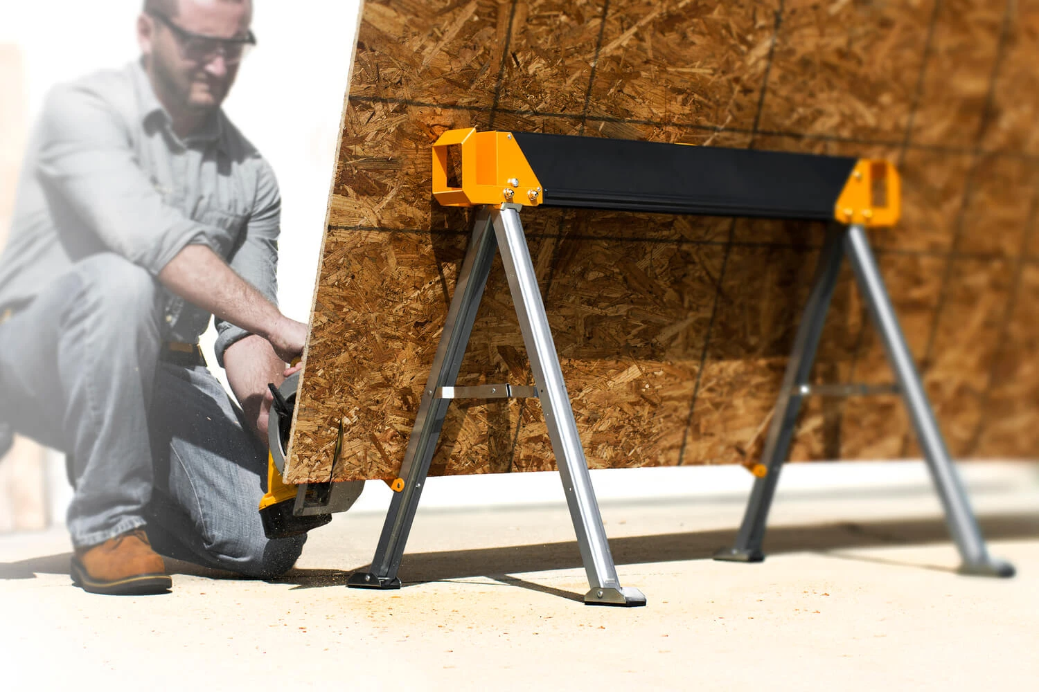 Features 2×4 support arms that transform 2 sawhorses into a solid jobsite table. Also includes innovative material support pegs that allow upright storage of materials and easy cutting. It also has easy-to-fold steady feet for all-surface use. With fast-open legs, setup is straightforward and simple. Powder-coated and zinc-plated steel prevents corrosion and withstands rigorous environments. This folding sawhorse includes an easy carry handle for effortless transport and rolled edges for safety and comfort.