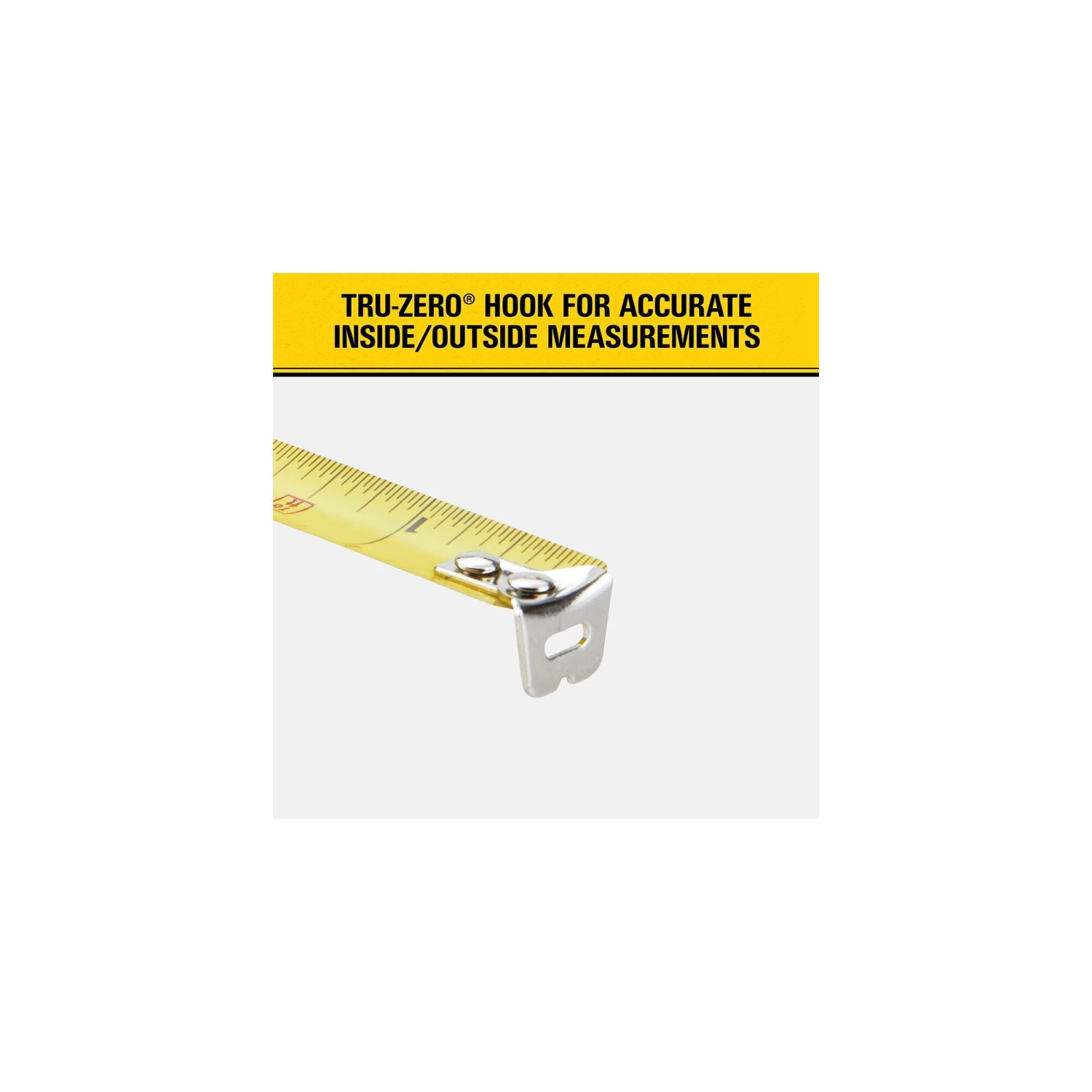 The STANLEY®16 ft. Tape Measure is made from high impact ABS plastic for added durability with a polymer coated tape blade to protect from wearing during use. This tape measure features easy to ready markings, including 16 in. and 19.2 in. stud center markings for framing jobs, and a Tru-Zero® hook for accurate inside and outside measurements.