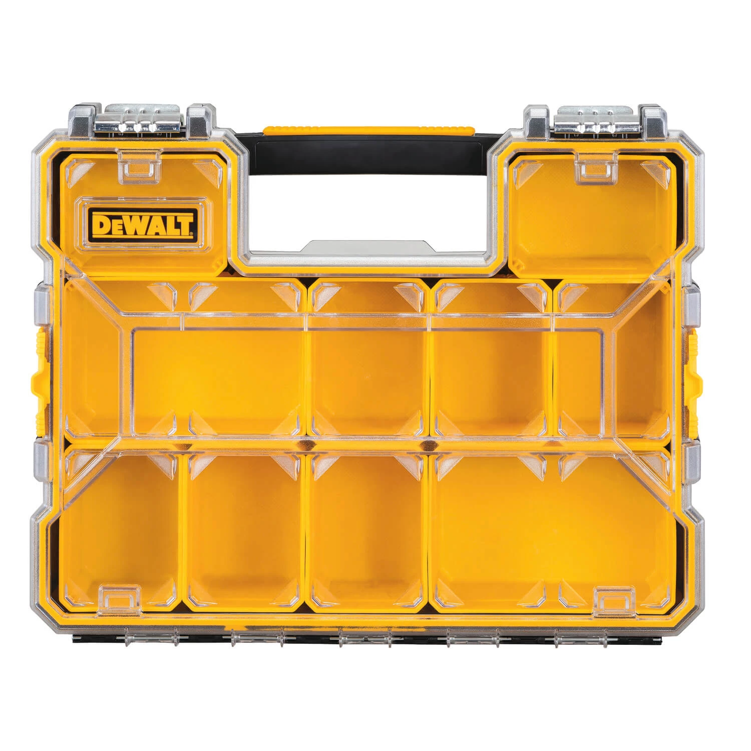 - Organizer with integrated carry handle for small parts organization
