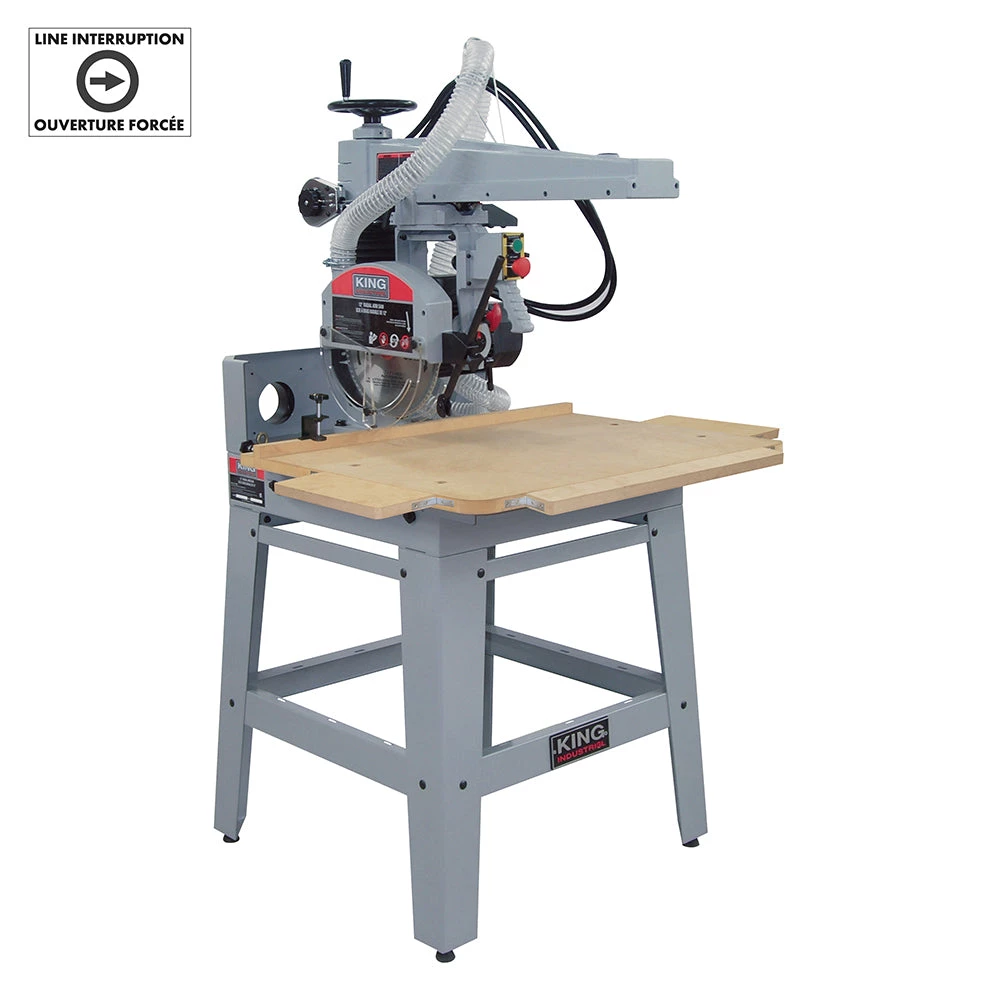 - Industrial rated radial arm saw has the versatility to crosscut, bevel cut, miter cut and swivel to a rip position to cut down panels precisely and accurately